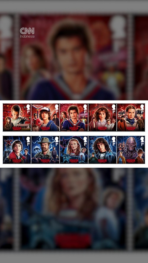 Layanan pos asal Inggris, Royal Mail, meluncurkan 14 prangko bertema serial Stranger Things pada Selasa (6/1).