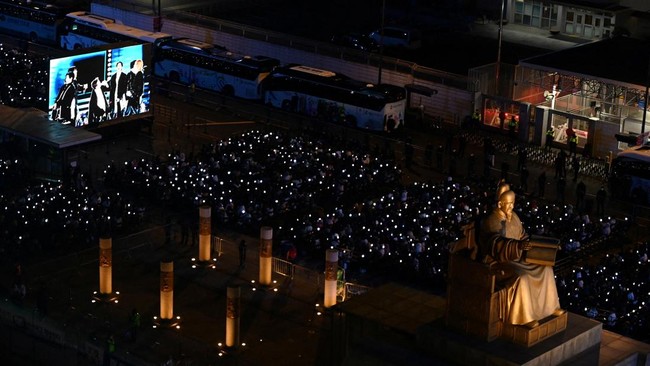 ARMY larut dalam emosi saat BTS akhirnya kembali tampil setelah lebih dari tiga tahun hiatus, dalam konser comeback di Gwanghwamun Square.