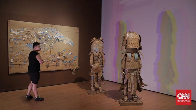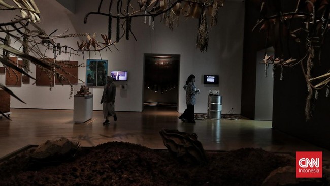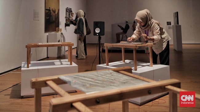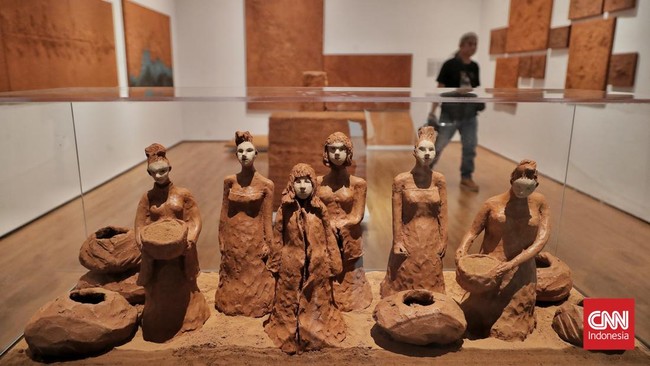 Pameran bertajuk Indonesian Women Artists edisi keeempat On The Map di Galeri Nasional, Jakarta, Selasa (14/4).