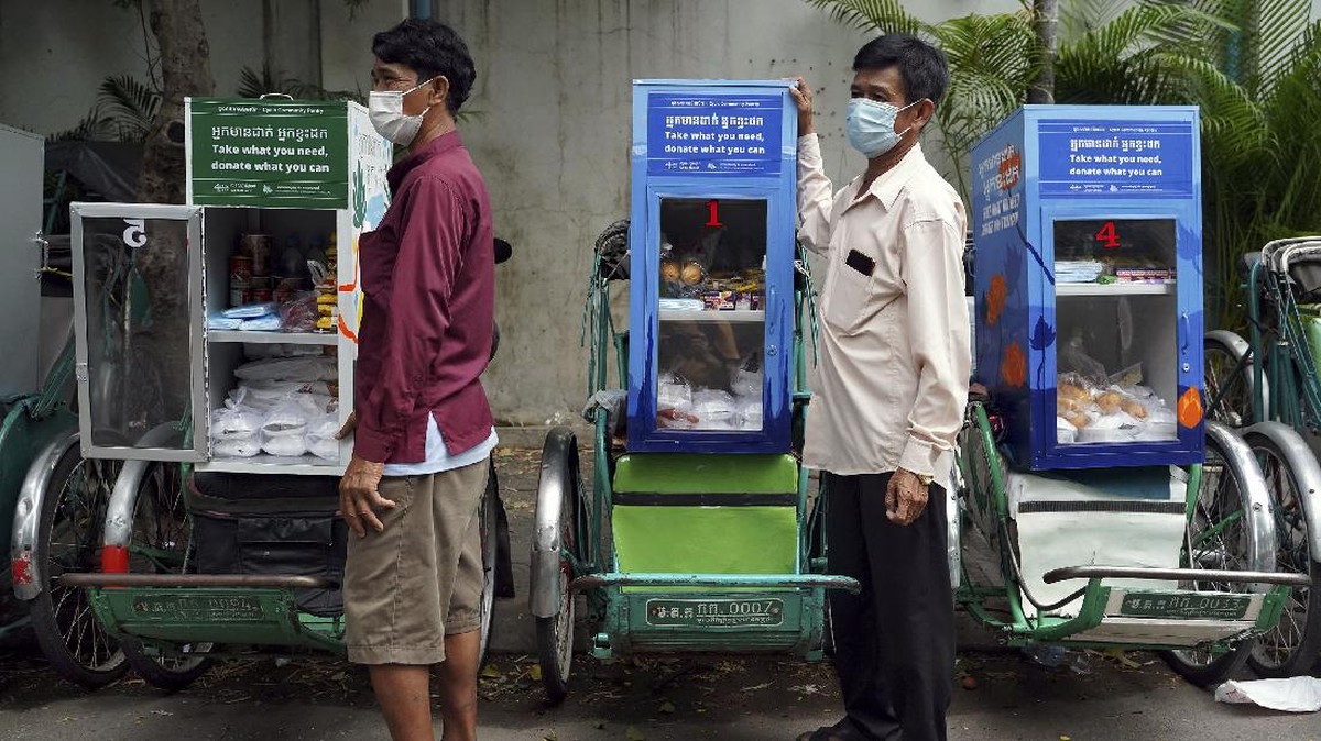 FOTO: Tukang Becak di Kamboja Bagi-bagi Makanan saat Pandemi
