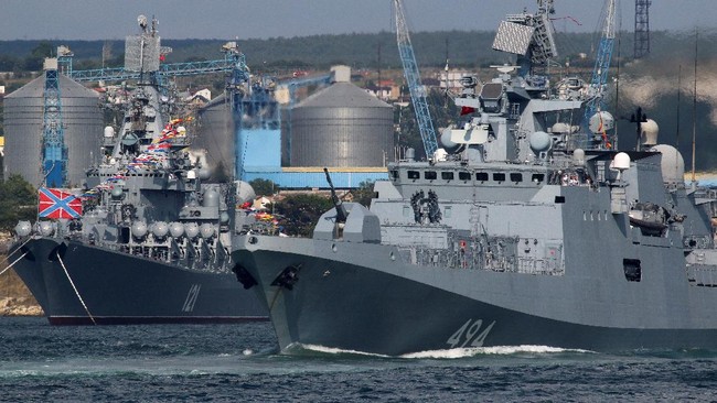 CNN Indonesia -- Rusia merayakan peringatan berdirinya angkatan laut yang ke 325 dengan parade kapal perang, Minggu (25/7).