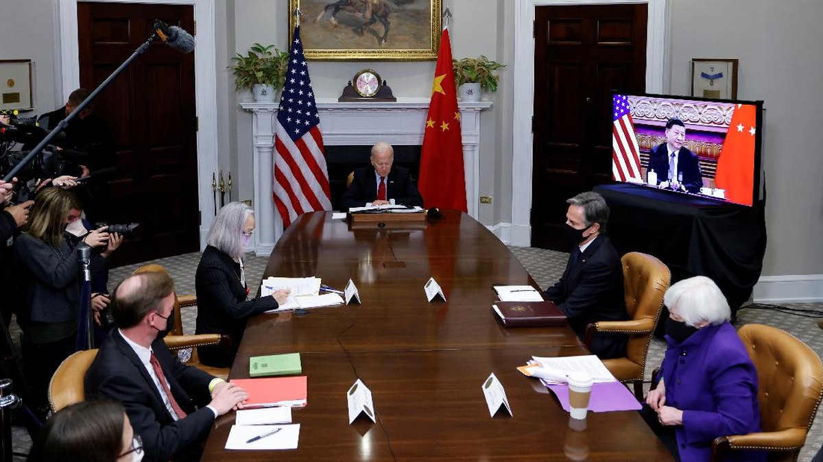FOTO: Mengintip Momen Tatap Muka Virtual Biden-Xi Jinping