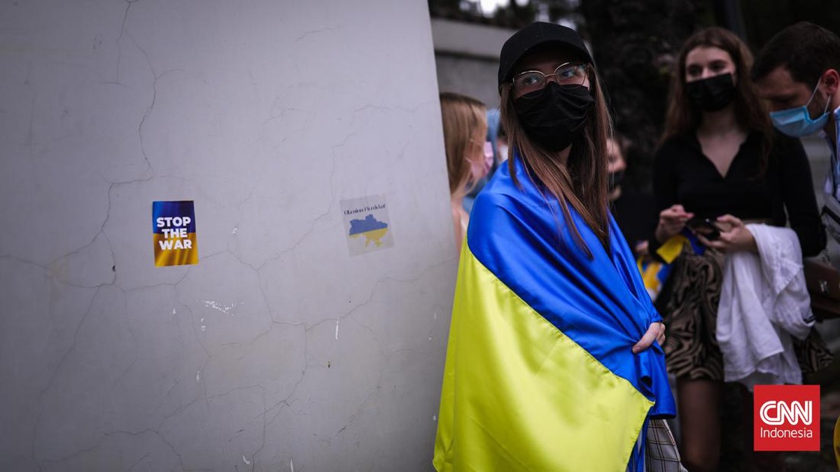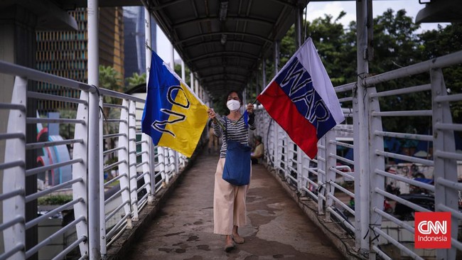FOTO: Aksi Mengutuk Invasi Moskow ke Ukraina di Kedubes Rusia Jakarta