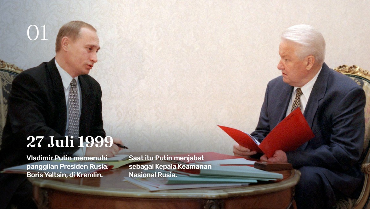 -- Berawal dari agen KGB, Vladimir Putin, berada di kekuasan tertinggi Rusia sejak 2000 silam setelah Boris Yeltsin mundur dari posisi presiden.