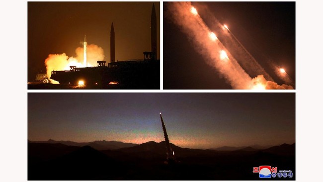 FOTO: Unjuk Gigi Korut Hujani Semenanjung Korea dengan Rudal-rudal