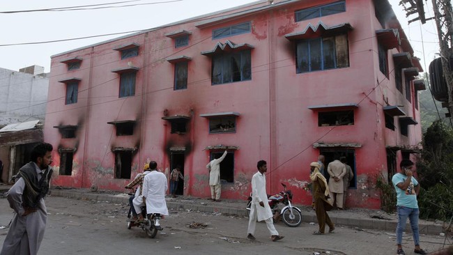FOTO: Terhasut Provokasi, Massa Bakar 5 Gereja di Pakistan