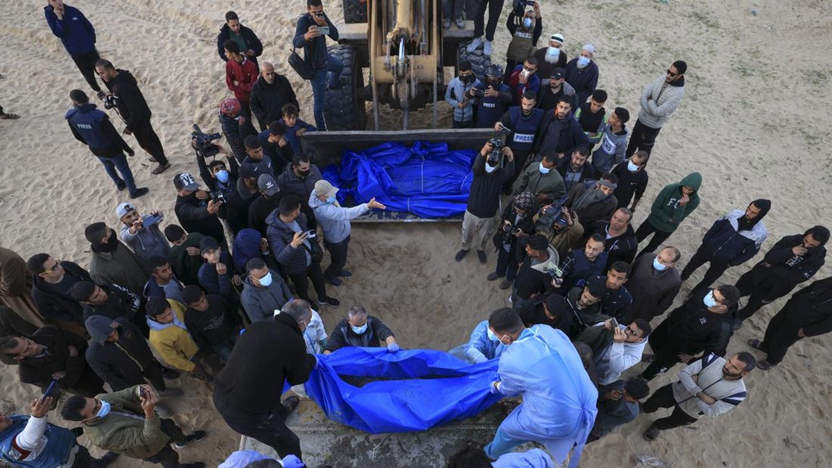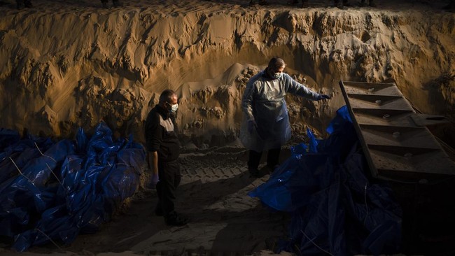 Jasad warga Palestina yang terbunuh di Gaza, yang ditangkap kemudian dilepaskan Israel, dikembalikan dan dikuburkan di kuburan massal di Rafah, selatan Gaza.