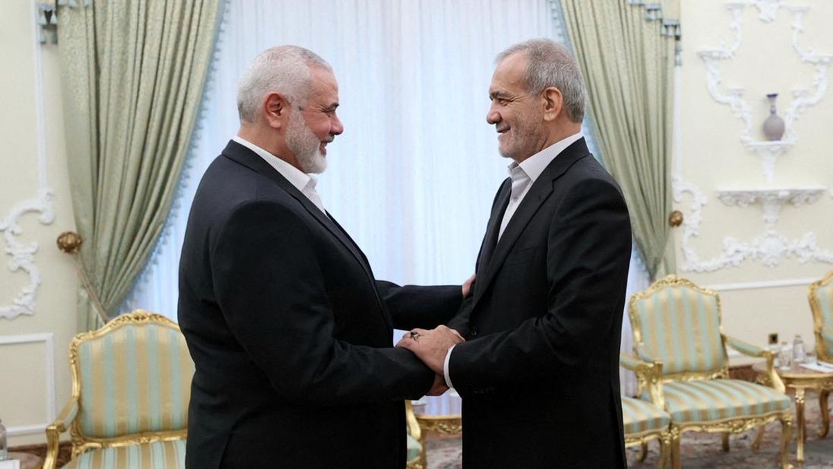 Momen Haniyeh mengunjungi Istana Presiden Iran dan bertemu Presiden Masoud Pezeshkian yang baru dilantik memimpin negara itu. (Iran's Presidency /WANA (West Asia News Agency)/Handout via REUTERS)