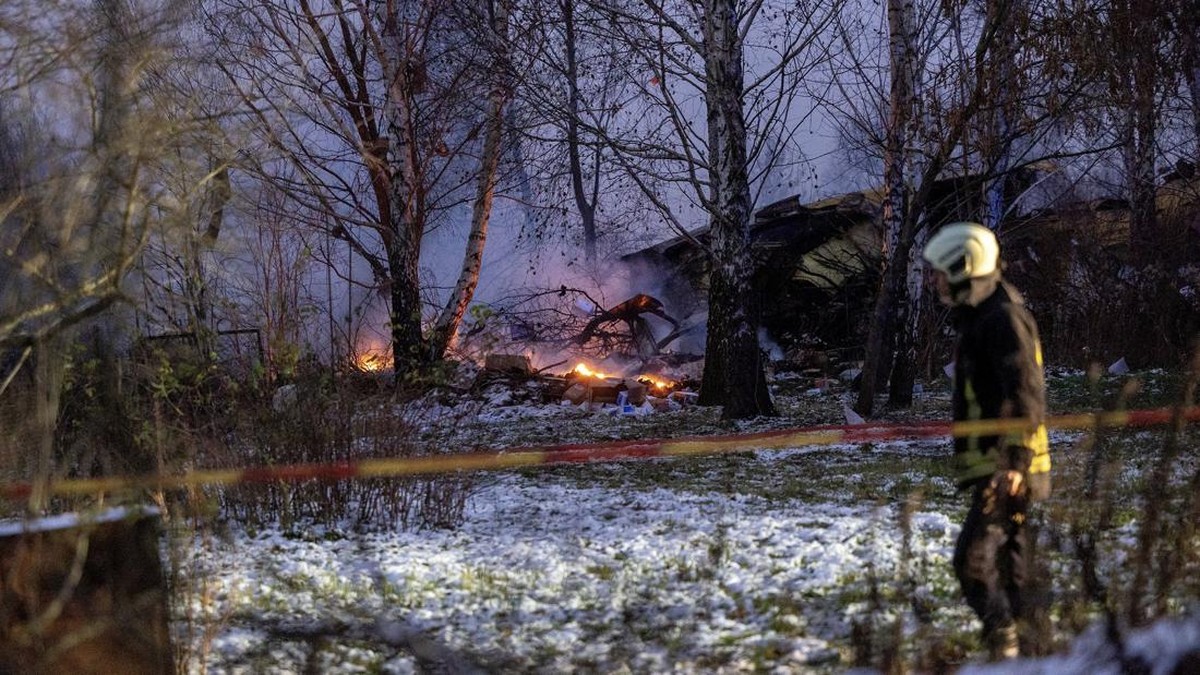 FOTO: Penampakan Bangkai Pesawat DHL Jatuh Timpa Rumah di Lithuania