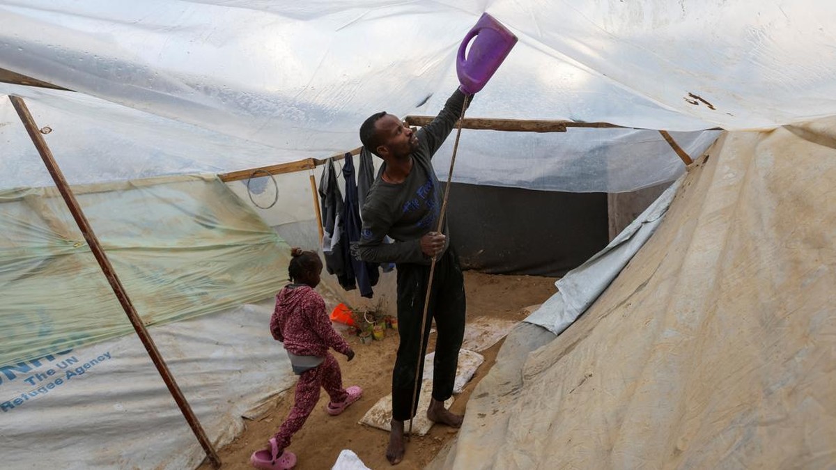 FOTO: Warga Gaza Gali Lubang di Bawah Tenda Kala Agresi Israel