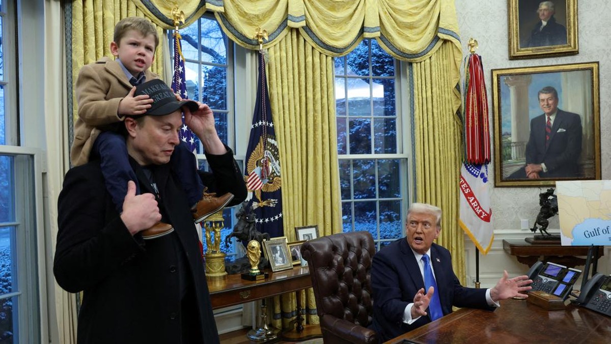 Pemilik X sekaligus kepala Departemen Efisiensi Amerika Serikat Elon Musk membawa anak saat menemui Presiden Donald Trump di Gedung Putih, Washington DC.