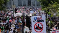 Massa dalam jumlah besar turun ke jalan di 50 negara bagian Amerika Serikat dalam aksi protes "No Kings" pada Sabtu (18/10). Para demonstran melampiaskan kemarahan atas kebijakan garis keras Presiden AS Donald Trump, yang disambut Partai Republik pembela Trump dengan menyebutnya sebagai demonstrasi "Benci Amerika".