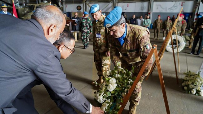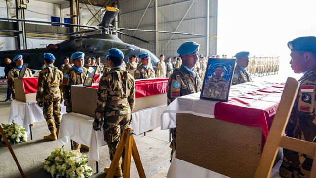 UNIFIL memberi penghormatan terakhir kepada tiga prajurit TNI yang gugur dalam dua insiden pada 29 dan 30 Maret di Lebanon Selatan.