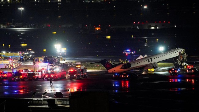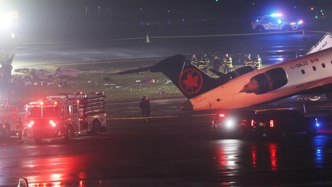 Jakarta, CNN Indonesia -- Pesawat Air Canada kecelakaan menabrak truk pemadam kebaran di Bandara internasional LaGuardia, New York, Amerika Serikat (AS), Minggu (22/3). Add as a preferred