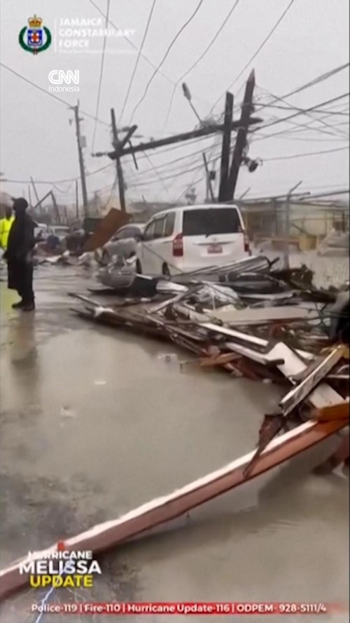 Badai Melissa melanda Jamaica dan menghancurkan rumah serta infrastruktur pada Selasa (28/10).