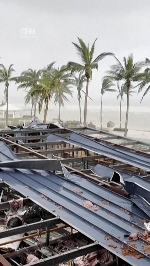 Sehari setelah badai berlalu, sejumlah bagian plafon hotel tampak runtuh akibat terjangan angin.