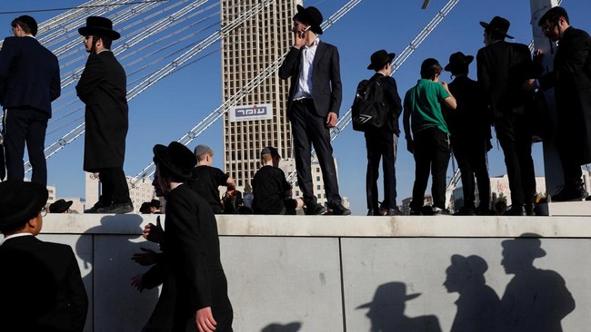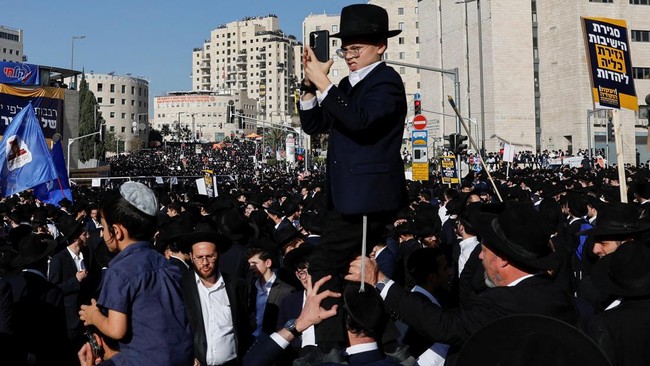 Puluhan ribu umat Yahudi ultra-Ortodoks turun ke jalanan Yerusalem, Palestina, yang diduduki Israel, memprotes kebijakan wajib militer PM Benjamin Netanyahu.