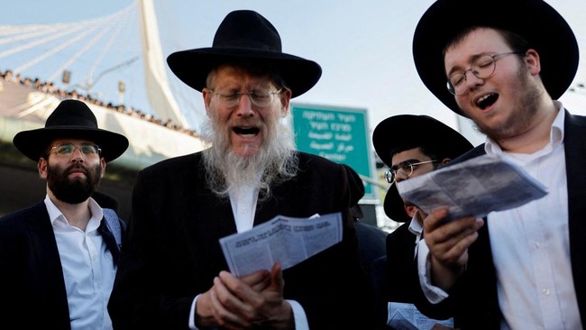 FOTO: Puluhan Ribu Yahudi Ortodoks Demo Netanyahu Tolak Wajib Militer
