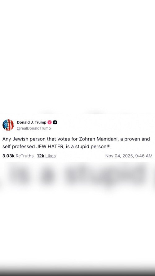 "Setiap orang Yahudi yang memilih Zohran Mamdani, seorang pembenci Yahudi yang terbukti dan mengakuinya sendiri, adalah orang bodoh!!!!" tulis Trump di X pada Selasa (4/11).