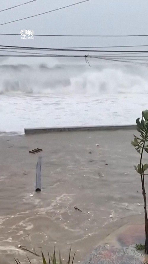 Rekaman video menunjukkan gelombang ombak pantai yang besar di Quy Nhon, Vietnam, pada Kamis (6/11) sebelum badai Topan Kalmaegi menerjang.