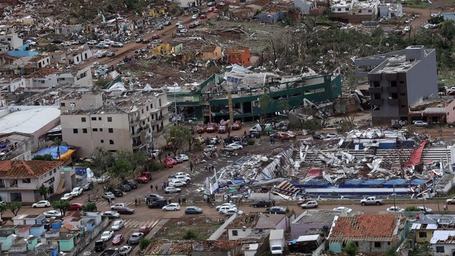 FOTO: Tornado Dahsyat Meratakan Kota di Brasil, 6 Tewas