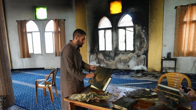 FOTO: Keji Pemukim Israel Bakar Masjid dan Al Quran di Tepi Barat