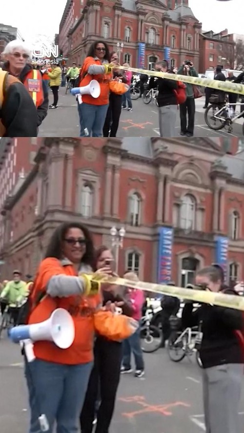 Terlihat para petugas kepolisian hingga Secret Service melakukan pengamanan aksi demo tersebut.