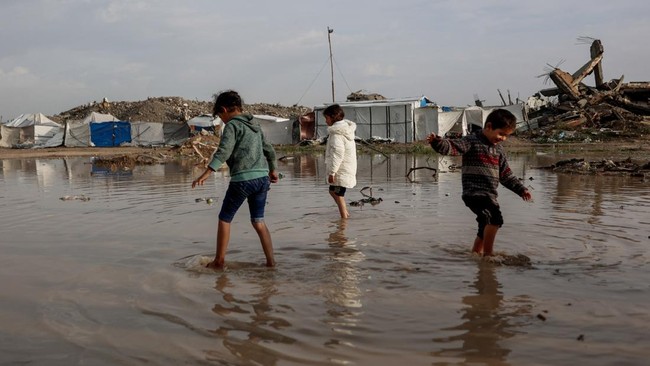 FOTO: Hujan Deras, Kamp di Gaza Terendam Banjir