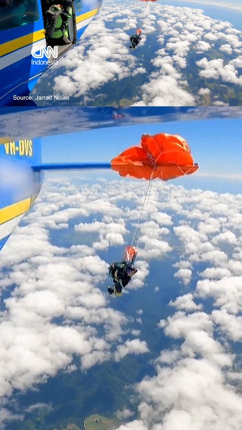 Otoritas Australia merilis video penerjun payung tersangkut ekor pesawat dengan ketinggian 4.600 meter.