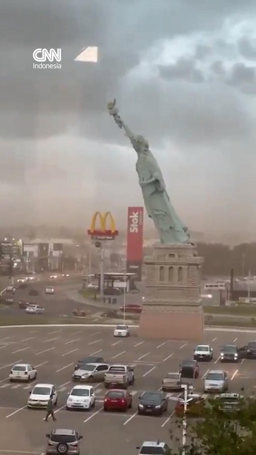 Replika Patung Liberty setinggi hampir 40 meter roboh setelah badai dahsyat menerjang Kota Guaiba,Brasil, pada Senin (15/12) sore.