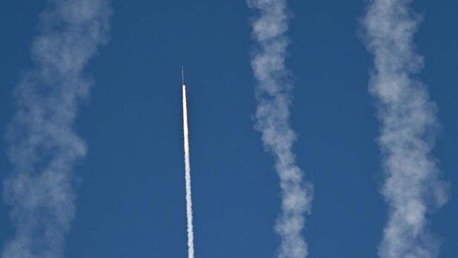 FOTO: Penampakan Korut Uji Coba Rudal Jelajah Strategis Jarak Jauh