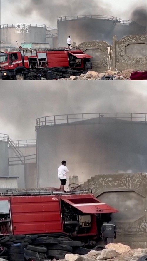 Kepulan asap tebal membubung setelah Arab Saudi melancarkan serangan udara di sebuah pelabuhan di Yaman pada Selasa (30/12).