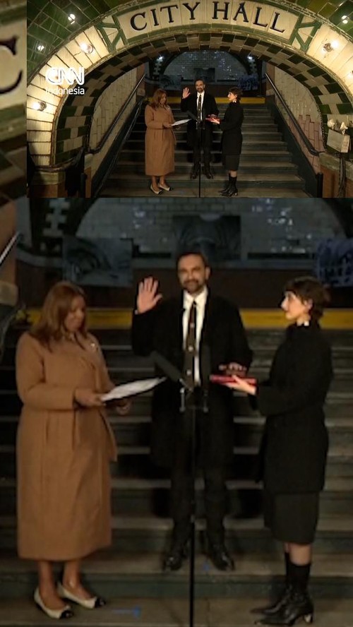 Zohran Mamdani dilantik menjadi Wali Kota New York di stasiun kereta bawah tanah Balai Kota yang terbengkalai pada Kamis (1/1).