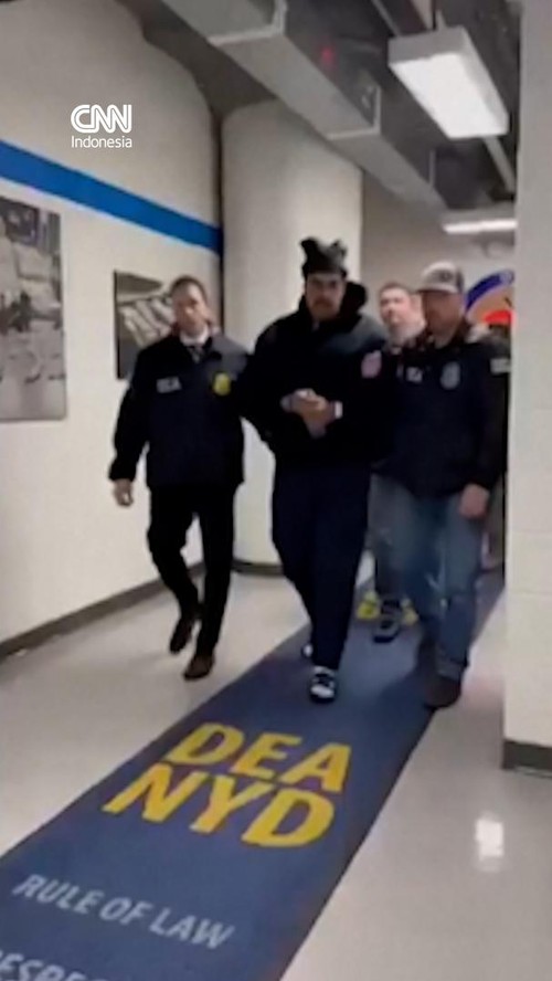 Nicolas Maduro terlihat berjalan di lorong markas Badan Pengendalian Narkotika (DEA) Amerika Serikat pada Sabtu (3/1) usai pasukan AS menangkap Presiden Venezuela itu untuk menghadapi tuduhan perdagangan narkoba.