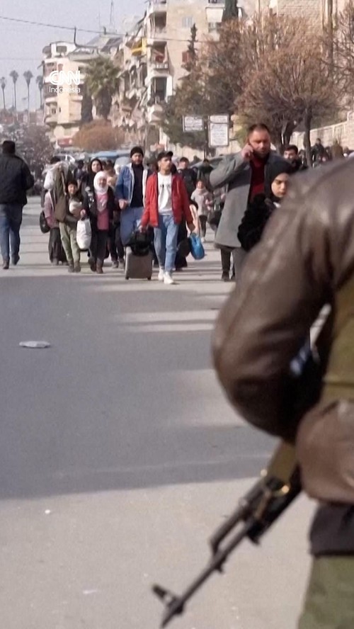 Ratusan warga tampak meninggalkan rumah mereka di Kota Aleppo, Suriah utara, Rabu (7/1), menyusul bentrokan antara pasukan pemerintah Suriah dan kelompok Kurdi SDF.