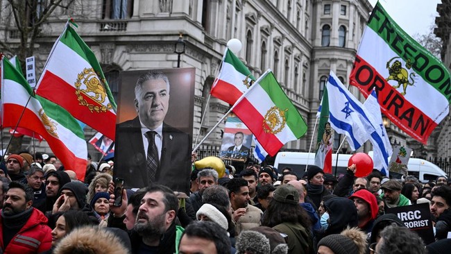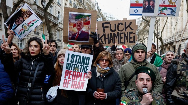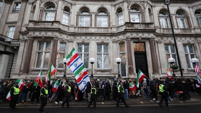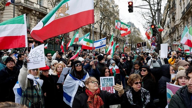 FOTO: Bendera Israel 'Menyusup' di Demo Anti-Khamenei di London-Paris
