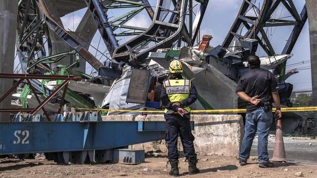 FOTO: Crane Lagi-lagi Jatuh di Thailand Tewaskan 2 Orang
