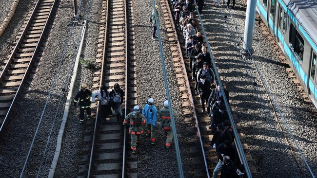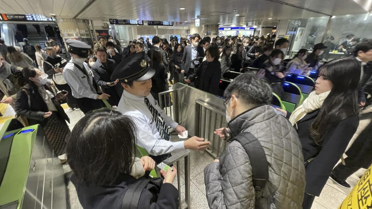 -- Jalur kereta listrik di Tokyo lumpuh imbas gangguan listrik. Ribuan penumpang terlantar dan memadati stasiun.