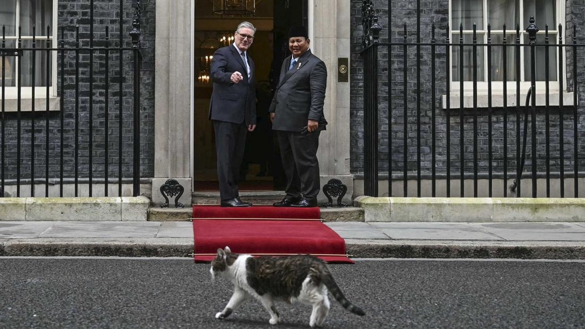 FOTO: Momen Kucing 'Kenegaraan Inggris' Larry The Cat Sambut Prabowo