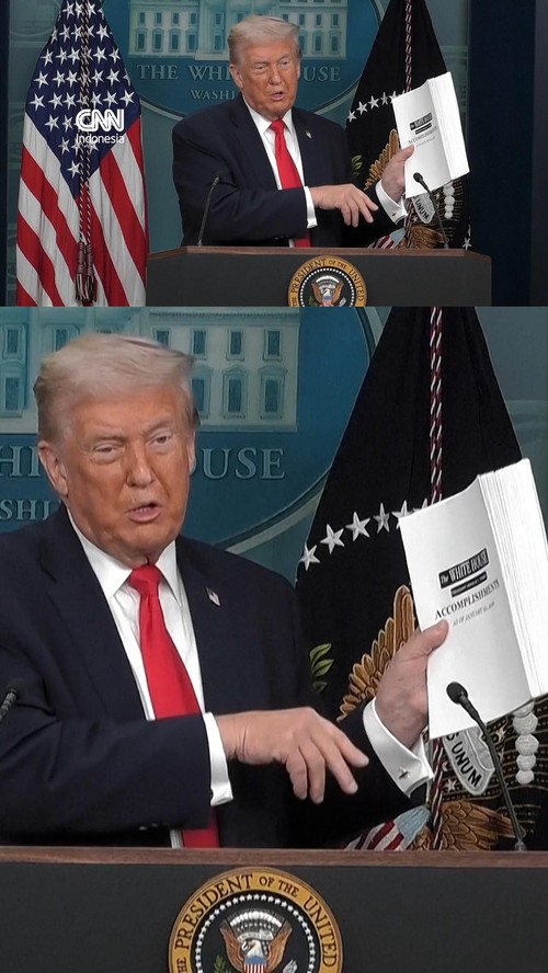 Usai memamerkan dokumen tebal tersebut kepada awak media, Trump kemudian melemparkannya ke lantai.