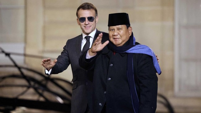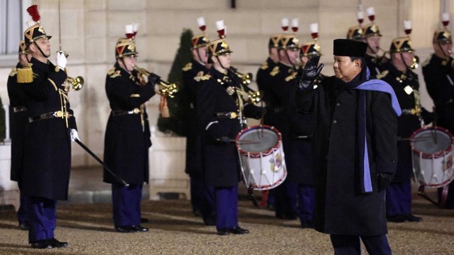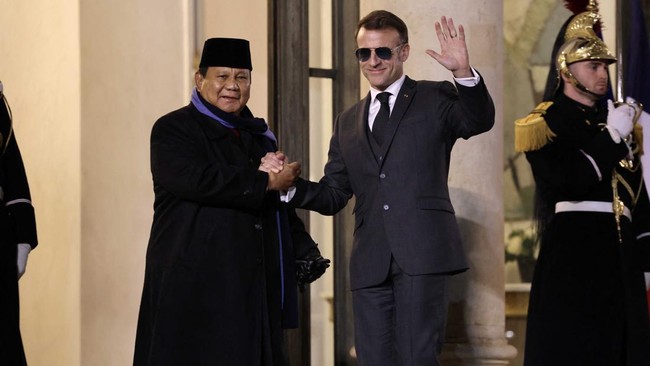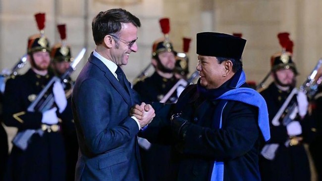 FOTO: Prabowo Disambut Emmanuel Macron di Istana Elysee