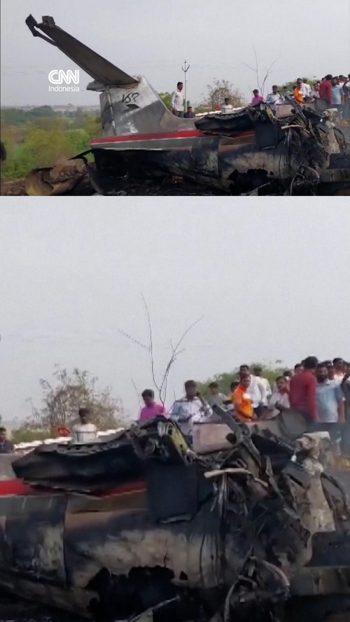 Penampakan Kecelakaan Pesawat Tewaskan Wakil Kepala Menteri di India
