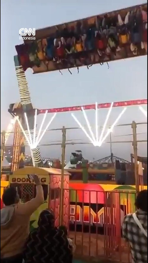 Rekaman video menunjukkan wahana di taman bermain Faridabad, India ambruk pada Sabtu (7/2).
