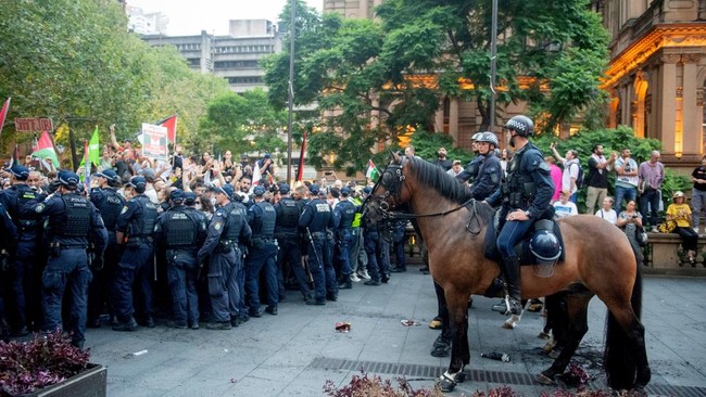 Aksi unjuk rasa di Sydney diwarnai bentrokan fisik antara massa dan aparat keamanan, yang mengakibatkan sedikitnya 27 orang ditangkap.