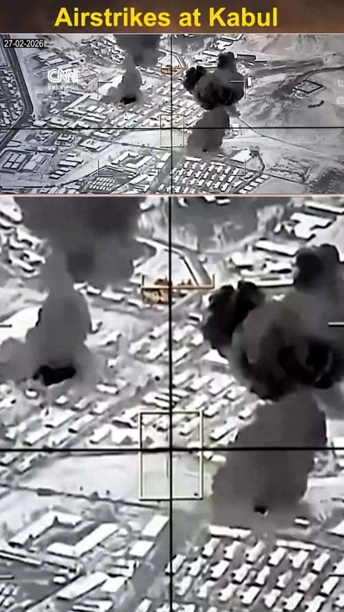 Pihak keamanan Pakistan merilis video yang menunjukkan serangan udara di Kabul, Afghanistan, Jumat (27/2).