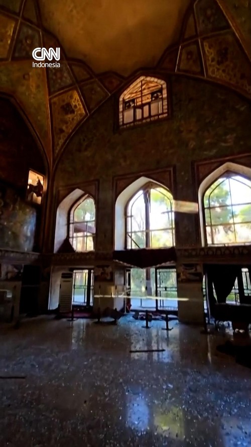 Rekaman video pada Senin (9/3) menunjukkan kerusakan di dalam Istana Chehel Sotoun di Isfahan, Iran di tengah serangan AS-Israel.