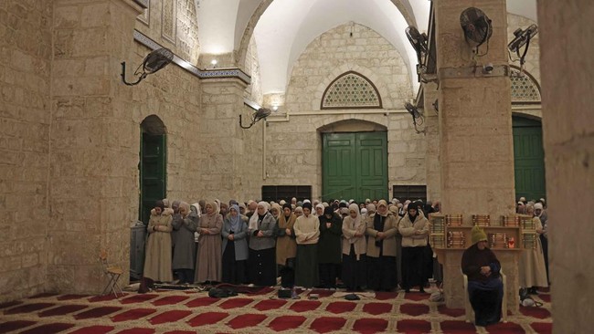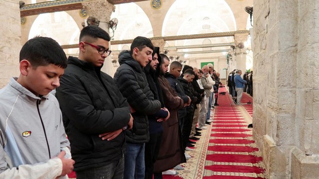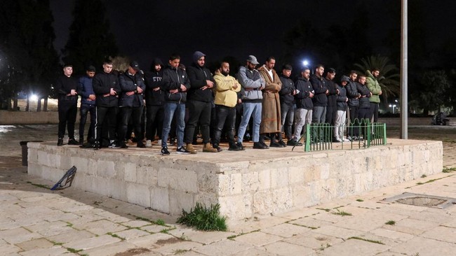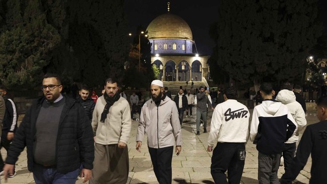 Warga datang ke kawasan Al Aqsa pada, Kamis (9/4) pagi untuk menunaikan salat subuh setelah Israel menutup kompleks tersebut selama 40 hari.