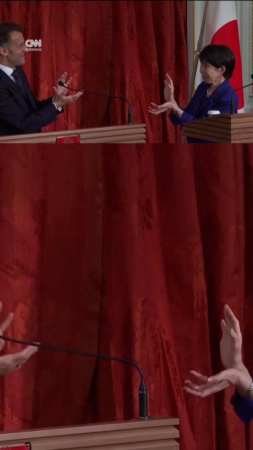 Momen Presiden Prancis Macron dan PM Jepang Takaichi Adu "Kamehameha"