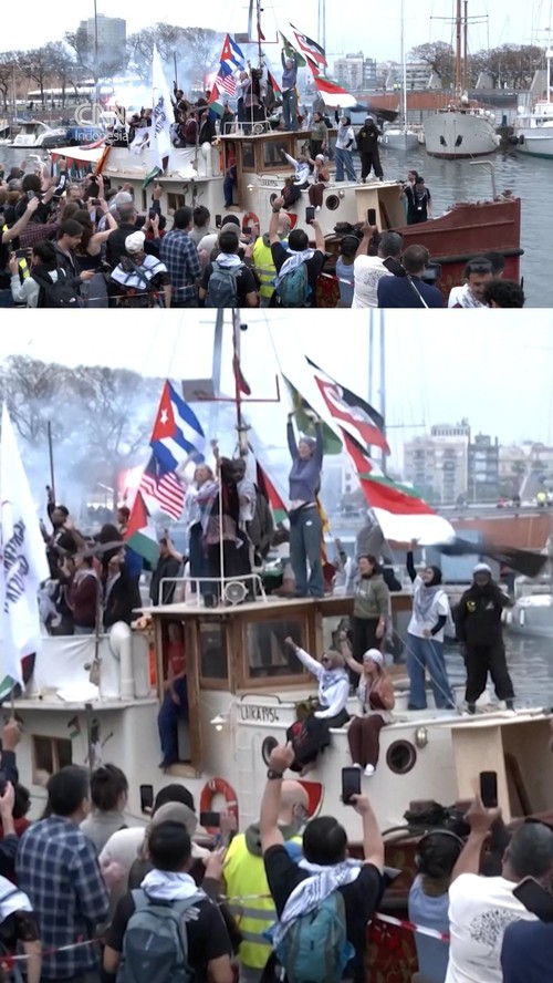 Kapal-kapal Global Sumud Flotilla (GSF) mulai berlayar dari Barcelona, Spanyol, menuju Gaza pada Minggu (12/4).