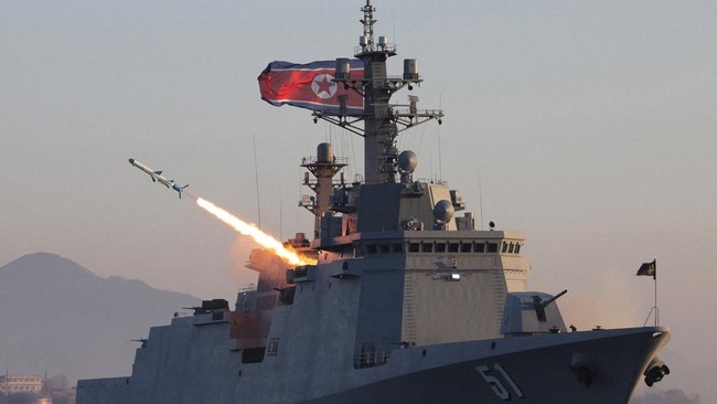 FOTO: Kim Jong Un Pantau Uji Coba Rudal Jelajah dari Kapal Perang